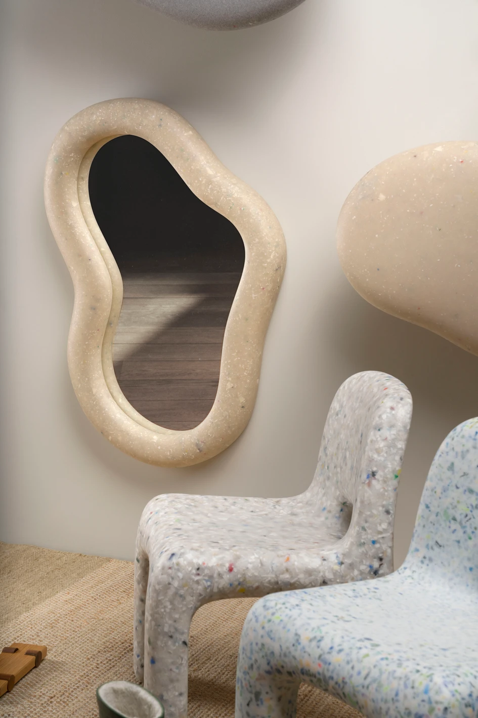 The Marine Mirror turns a functional everyday object into a sculptural focal point and art piece. With its curvy, shoreline-inspired shape, it brings a natural softness to walls, offering more than just reflection. Its playful asymmetry invites creative placement, enhancing small spaces, brightening hallways, or softening structured interiors. Designed to harmonize with various styles, it offers multiple hanging options vertically and horizontally.