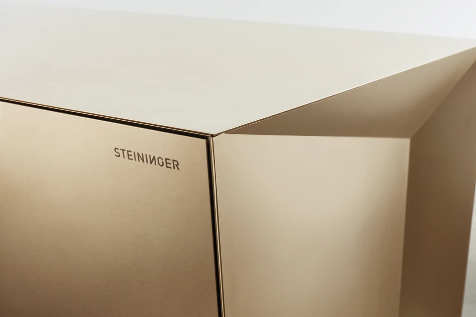 In addition to natural stone and fine woods, Martin Steininger prefers to use raw concrete as well as rare metal alloys, which make his creations and rooms a sensory and tactile experience. In addition, he relies on the most modern production technologies as well as refined craftsmanship, because, in the end, this is the only way to make each object unique. For FOLD, too, the alloy is precisely prepared using a computer-based process to within a fraction of a millimetre and finished to perfection by hand.