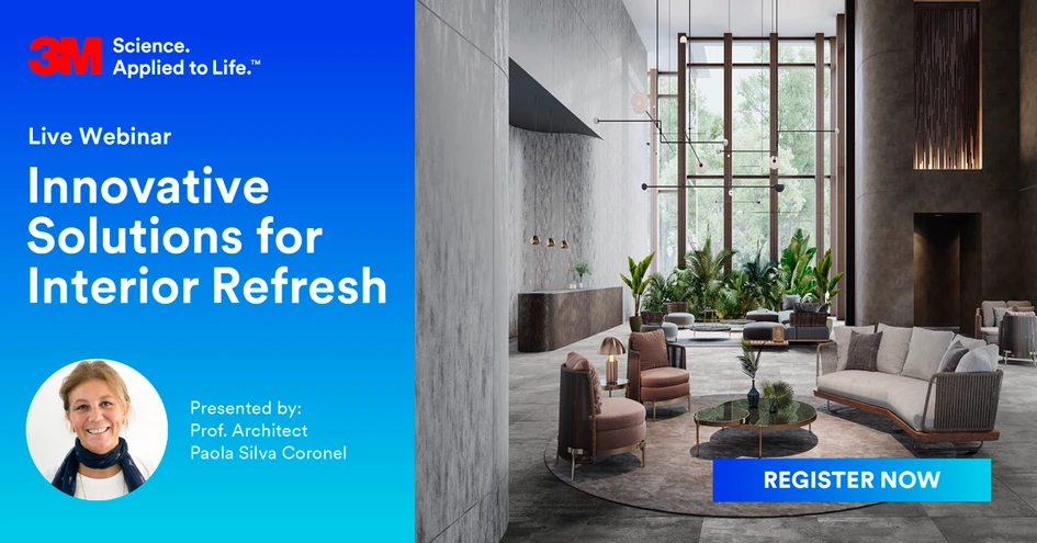 To find out more about the product range, 3M are hosting a webinar on 23 September at 11:00 CET titled ‘Innovative solutions for interior refresh’