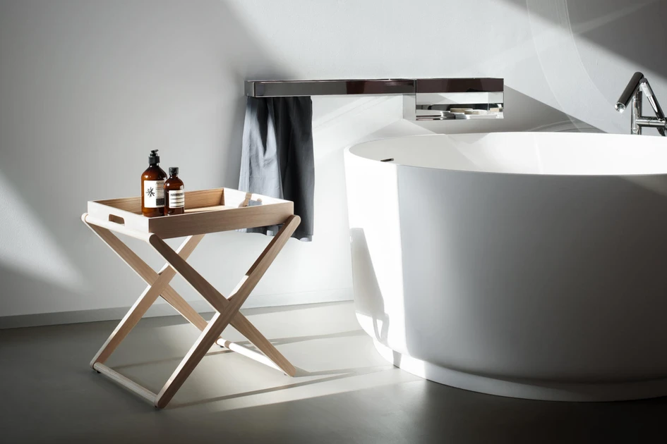Looking to save time on the morning schedule, many attempt to multi-task – instead of mixing up brushing one's hair and brushing one’s teeth, however, combining breakfast with bath time is a possibility. The integrated bathtub at the Daichi Isumi House, for example, sits alongside a wide flat surface perfect for holding croissants and cappuccinos. Meanwhile, versatile folding tables like X from Agape can position bath-improving items closer to hand.The desire to retire back to bed is often lost by the time breakfast is ready