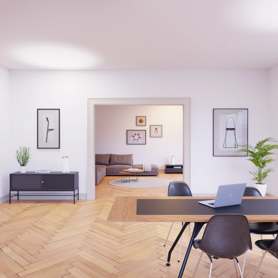 For both the office and the home office, flexible furniture and lighting systems are therefore increasingly required, ones that can adapt to these new conditions in an uncomplicated manner and are versatile in their use. Anyone who has had to spontaneously convert their living or dining room into an office over the last few months due to the current circumstances will certainly have noticed quickly what the absence of an ergonomic office chair or good workplace lighting, for example, means. Furniture is relatively easy to organise, but what about lighting?