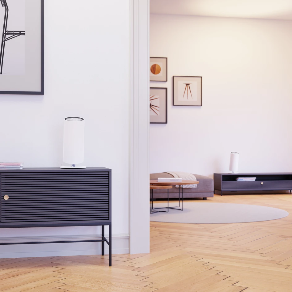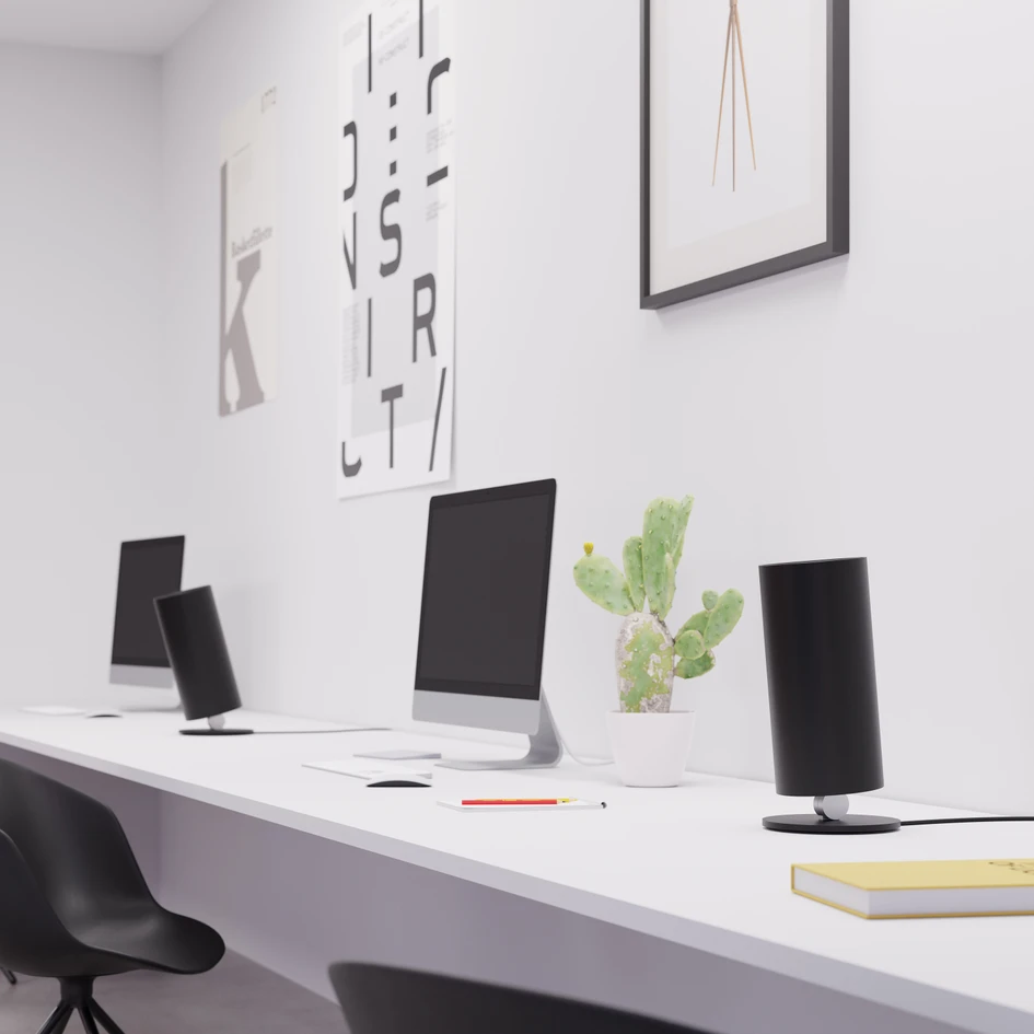 STREAM is available in three versions: as a handy table lamp or as a floor version in two different heights. You can also choose between white and black variations. The simple, cylindrical design fits into every working environment, from the classic office to open space areas and home offices. At home, the luminaire not only looks good on the desk, but also blends in well with living spaces. Here too, STREAM bathes the rooms in pleasant light, creating a special atmosphere.
