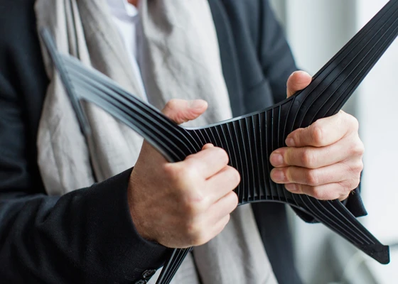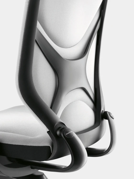 One of the innovative interventions the design team implemented to reduce the number of components was to manufacture the seat and back system from a single piece of high-performance plastic. Using a technique borrowed from the automotive industry, this component combines two different materials in the same mould to enable different levels of stiffness and ensure the frame is both supportive and flexible. Moreover, the two swing arms on the underside of the seat have a direct influence on a central spring, resulting in instant responsiveness and meaning they function as part of the core mechanism, dispensing with the need for externally housed springs.