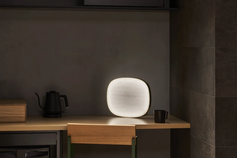 And-on is a design by Saltco for Y.S.M, both from Japan. The oval table and floor lamp is formed by a brass-coloured metal band. With two skins made of washi paper serving as a diffuser, And-on is a modern interpretation of antique techniques and emits light harmoniously. Similarly, Royoko from China transfers a centuries-old material into a contemporary design. The lampshade and base of the Fú table lamp are made of rice grain porcelain, for which the city of Jingdezhen is famous.