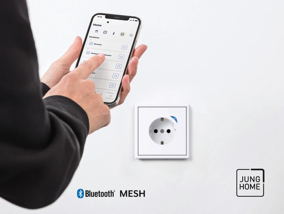 The message from JUNG: ‘Smart home technology is undergoing an evolution. The systems are becoming more and more intelligent, but installation and operation are still becoming easier.’ The good thing about it is that as a user you don't have to worry about more and more displays and constantly flashing gadgets in every corner of the room. On the contrary: 'You can't see the latest evolutionary step from JUNG HOME by looking at the products alone. Sockets are intelligent and switches communicate with each other wirelessly, and yet they still look how switches and sockets look,' says the manufacturer. And all that in the large variety of colours you are used to from JUNG. JUNG HOME is a new system that relies on wireless communication via the secure, worldwide Bluetooth® Mesh radio standard, instead of a server or the Internet, whether it is a room thermostat or a power socket with energy measurement functionality.