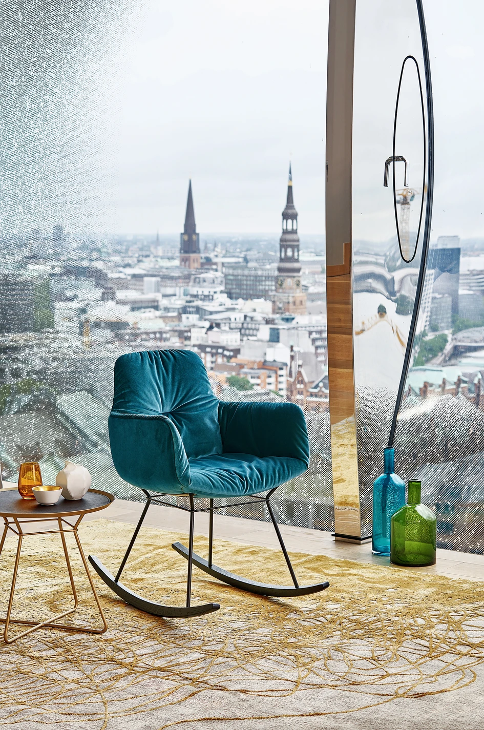 A number of years ago, as a further step in its evolution, the Leya chair was given rockers, and with that, the Leya Wingback and Lounge rocking chairs were born. And why not, after all? Rocking back and forth on a rocking chair not only puts one in a good mood, it encourages the generation of ideas and, of course, helps with relaxation. In order to create that perfect rocking motion on parquet floor or carpet, the designers devoted a lot of time and worked meticulously on developing the ideal curvature for the chair’s all-important rockers.