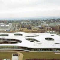 The Rolex Learning Center has probably become just as popular with students. This revolutionary structure was created by the Japanese firm of architects SAANA. The right-angled building covers an area of 88,000 square metres. In the interior of the building the outlines of the structure are hidden by the hills and valleys and plateaus created by its wavy design, and there are neither physical nor visual divisions between the individual areas. Gentle slopes and terraces replace steps and stairways, and visitors stroll along the gentle curves or use the "horizontal lifts" which were designed especially for the Rolex Learning Center, elegant glass enclosures which use the technology of the normal lift. From the upper zones visitors have a view not just of the campus but also of the nearby Lake Geneva and the Alps.