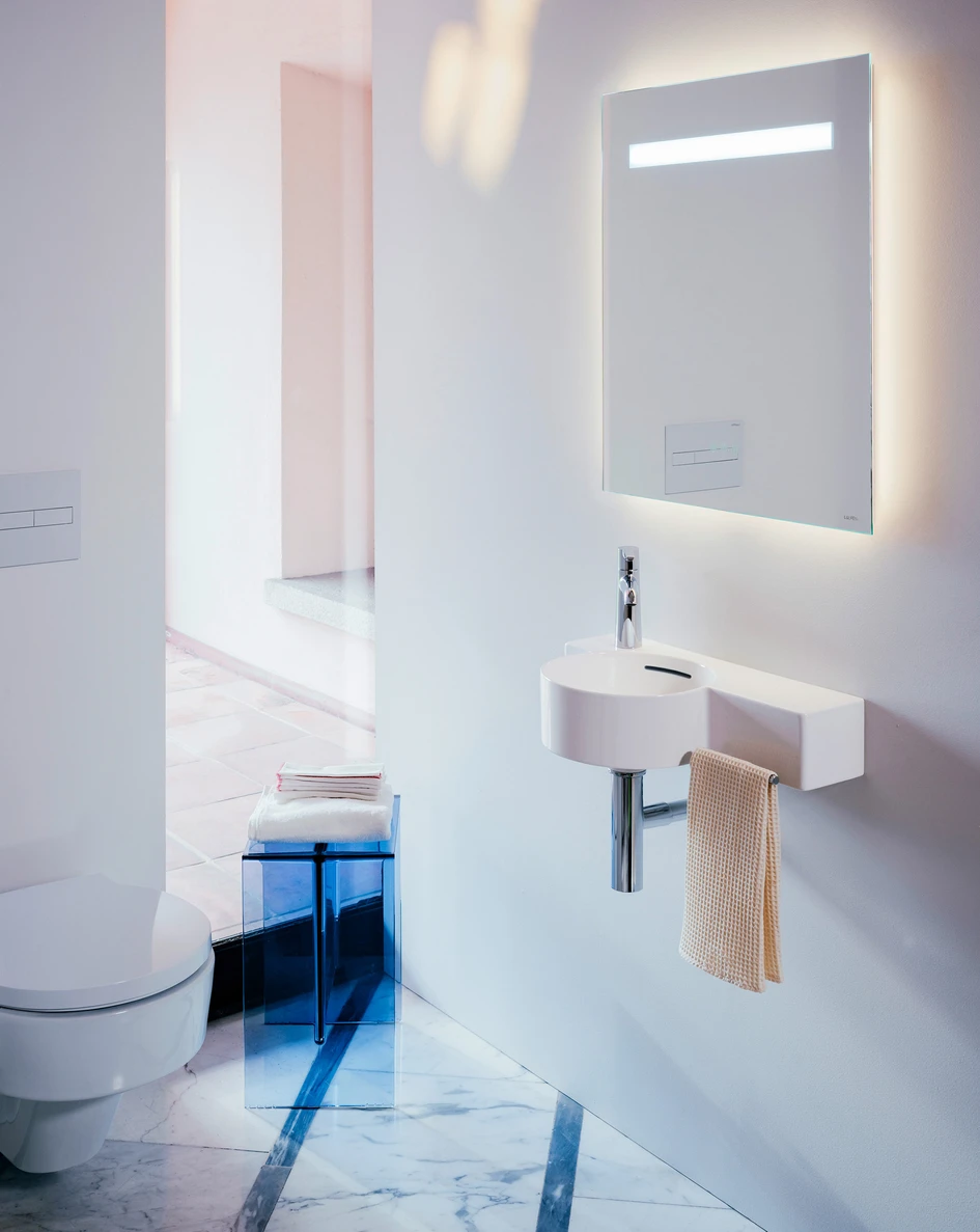 Pure and Val were created for each other but are available as a series to combine freely with all other LAUFEN collections. Together, they succeed in giving a feel-good atmosphere to smaller bathroom spaces, – perfection down to the last detail and offering luxury solutions also to those working on smaller budgets.