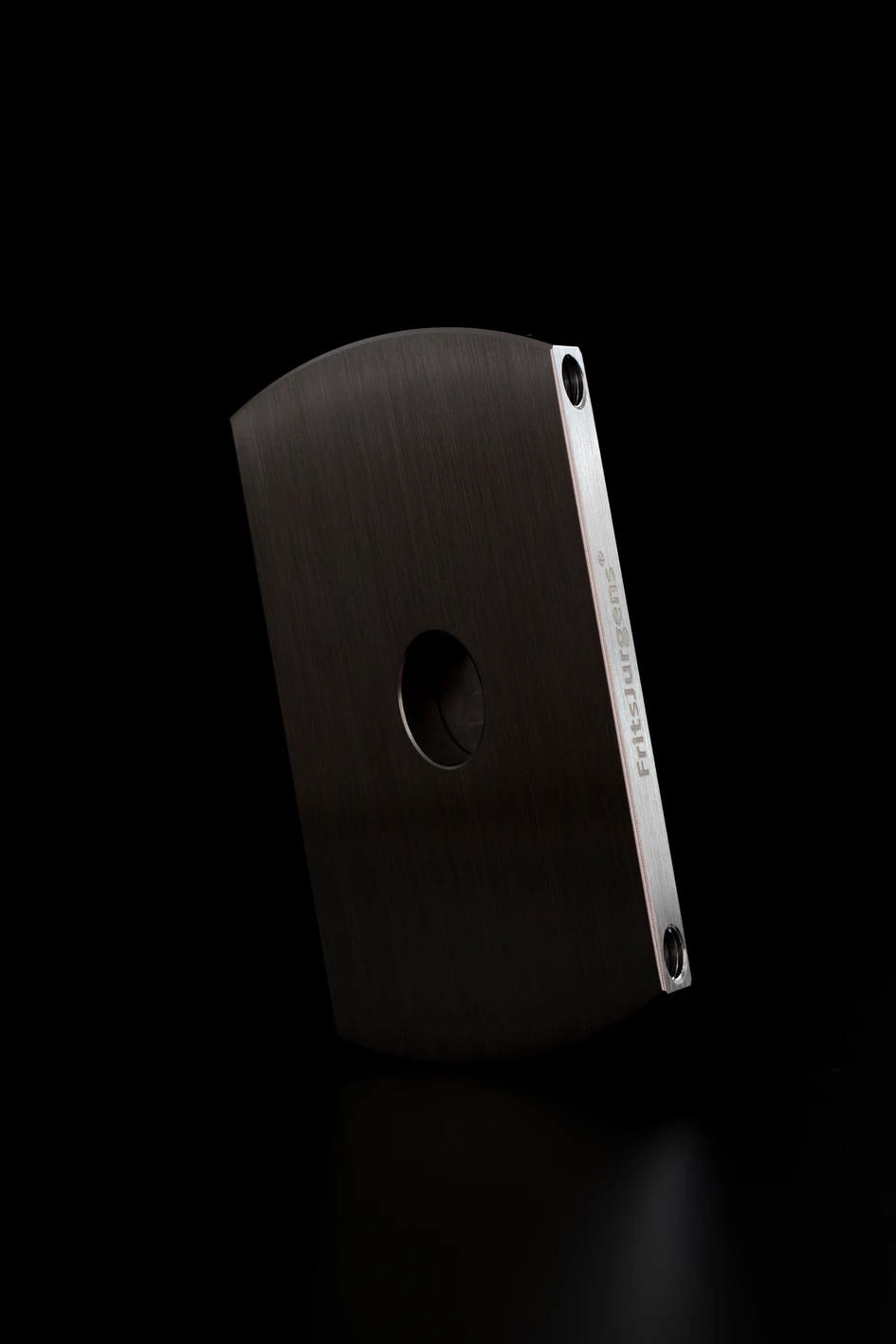 When installing a FritsJurgens pivot hinge, the only elements entering the floor are 8mm long pins that hold the small, well-designed floor plate in place. This plate replaces the unsightly cover plate of an in-floor closer. The pivot hinge, hidden inside the bottom of the door, then rests on this floor plate.