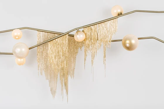 With a degree in industrial design from the Rhode Island School of Design, Adelman began specializing in lighting in 1996, eventually launching her own studio in downtown New York City in 2006. Mixing natural materials and organic forms with machine parts and an industrial edge, Adelman seeks to capture the ephemeral beauty of nature. Metal elements like shiny brass and oil-rubbed bronze contrast with tinted glass or milky white porcelain, creating a new kind of luxury object. The Branching Bubbles collection, designed in 2006, includes works that are like suspended sculptures with meandering metal armature supporting hand-blown glass globes. Collections such as Burst, with its pointed daggers and curved glass literally bursting from its core, Cherry Bomb, with its jewel-like, foiled glass spheres and delicate chain metal and Knotty Bubbles, which uses thick, nautical rope to support glass globes, show that Adelman’s work can be both sensual and empowering. Throughout her career as a designer, Adelman has also incorporated elements of performance, dance and film into her pieces, at times blurring the boundaries between functional design, art and installation. Her work has been exhibited at the Cooper Hewitt National Design Museum and Design Miami, and she continues to collaborate with showrooms in Europe and the United States including Nilufar Gallery, Triode and the Future Perfect, among others.