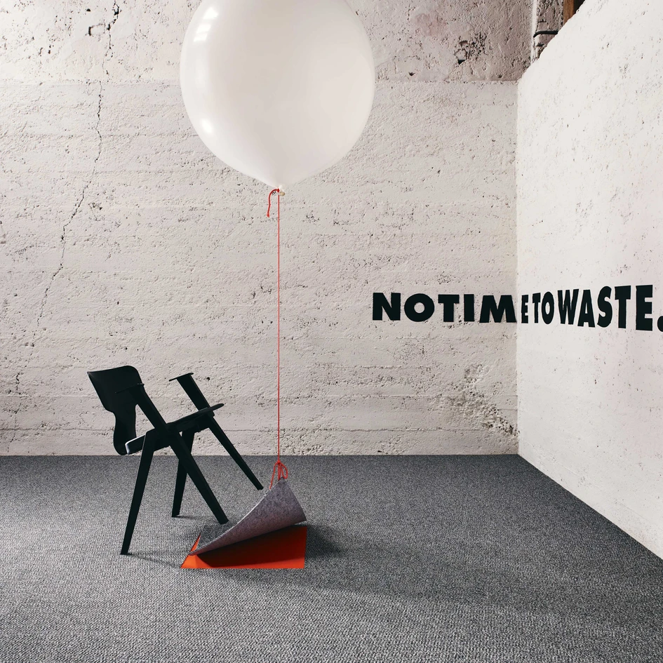 NEOO is available both as a 50 x 50-centimetre carpet tile and in four-metre wide strips. In terms of colour, it is initially limited to three shades of grey, which are produced from three yarns dyed in an environmentally friendly solution-dyed process in appropriate mixing ratios. The compositions provide the carpets with exciting contrasts as well as impressive characteristics in terms of extreme durability, dirt resistance and easy maintenance. The consistent limitation of the colour range also helps to keep the ecological footprint low. This means that the manufacturer does not have to keep an excessively large quantity of different yarn colours in stock if, in the end, grey shades are generally ordered. The NEOO floors act like a blank canvas on which coloured accents or pieces of furniture with natural textures really come into their own.