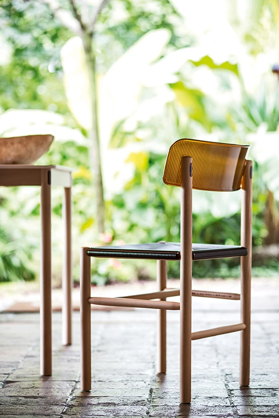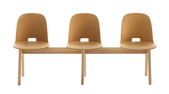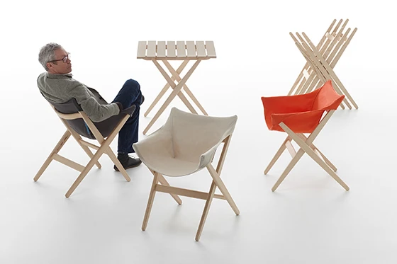 'I think this sort of technical fabric combined with the raw beech is very nice, like I did with the upholstery model for Andreu World. Another example would be the T-chair that I did this year for Maruni. It is a wood seat with wood legs, with the back connected by bending steel bars that come in three colours: red, black and a dark green. So the colours of Japanese lacquer combined with the wood. I am always looking for ways to make things richer by colour and by material combination.'