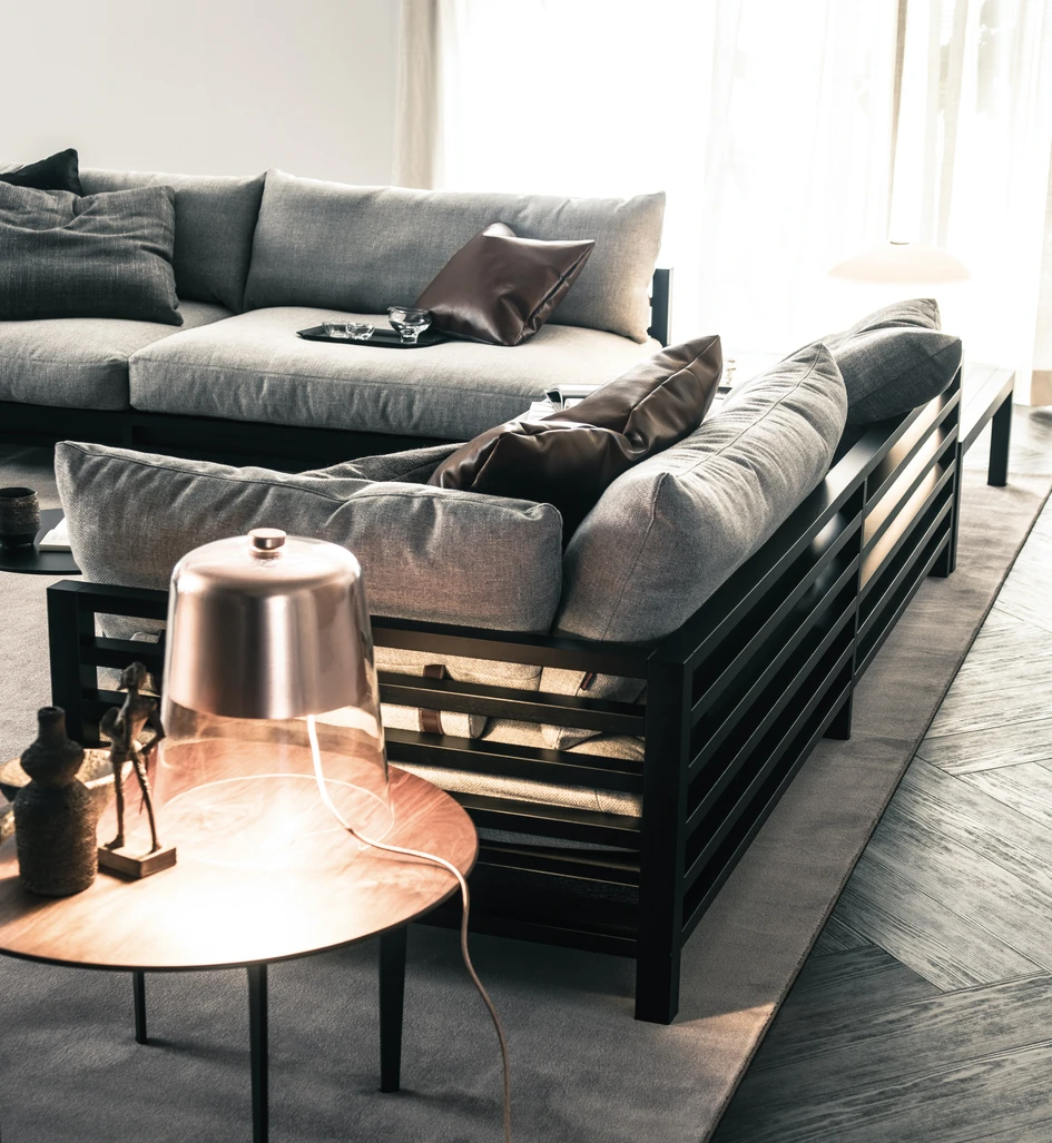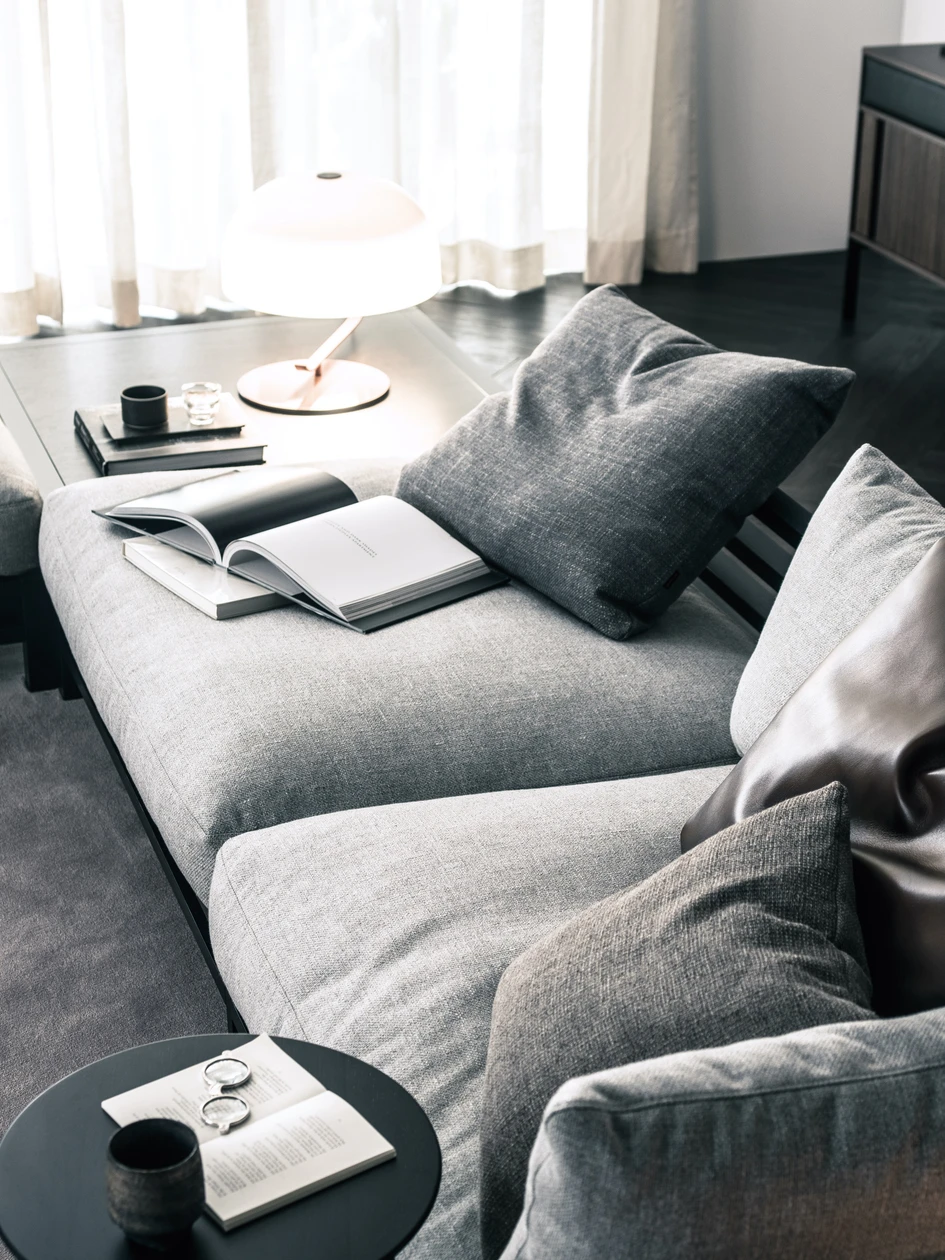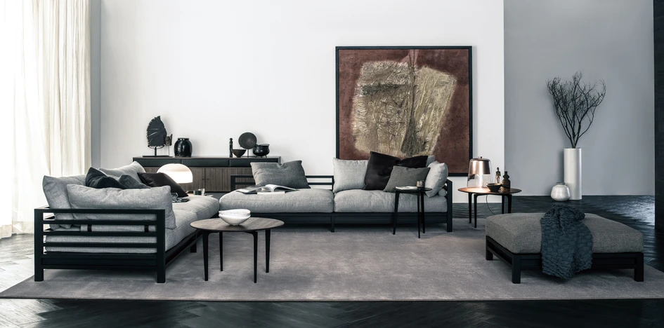 The Leewise Exclusive sofa is a new modular sofa characterised by its spacious upholstery, roomy cushions, stitched seams and low seating height of 38.5cm which is typical to Japanese living. As well as bringing comfort, the carefully crafted back, seat, and armrest design bring maximum functionality. The solid ash frame features slim wooden staves that form a balanced grid which designers can personalise with padded elements in matte black and matte grey hues. Additionally, the sofa’s modules offer much versatility, with lengths ranging from 80 to 250 cm, and corner, ottoman and chaise longue elements.