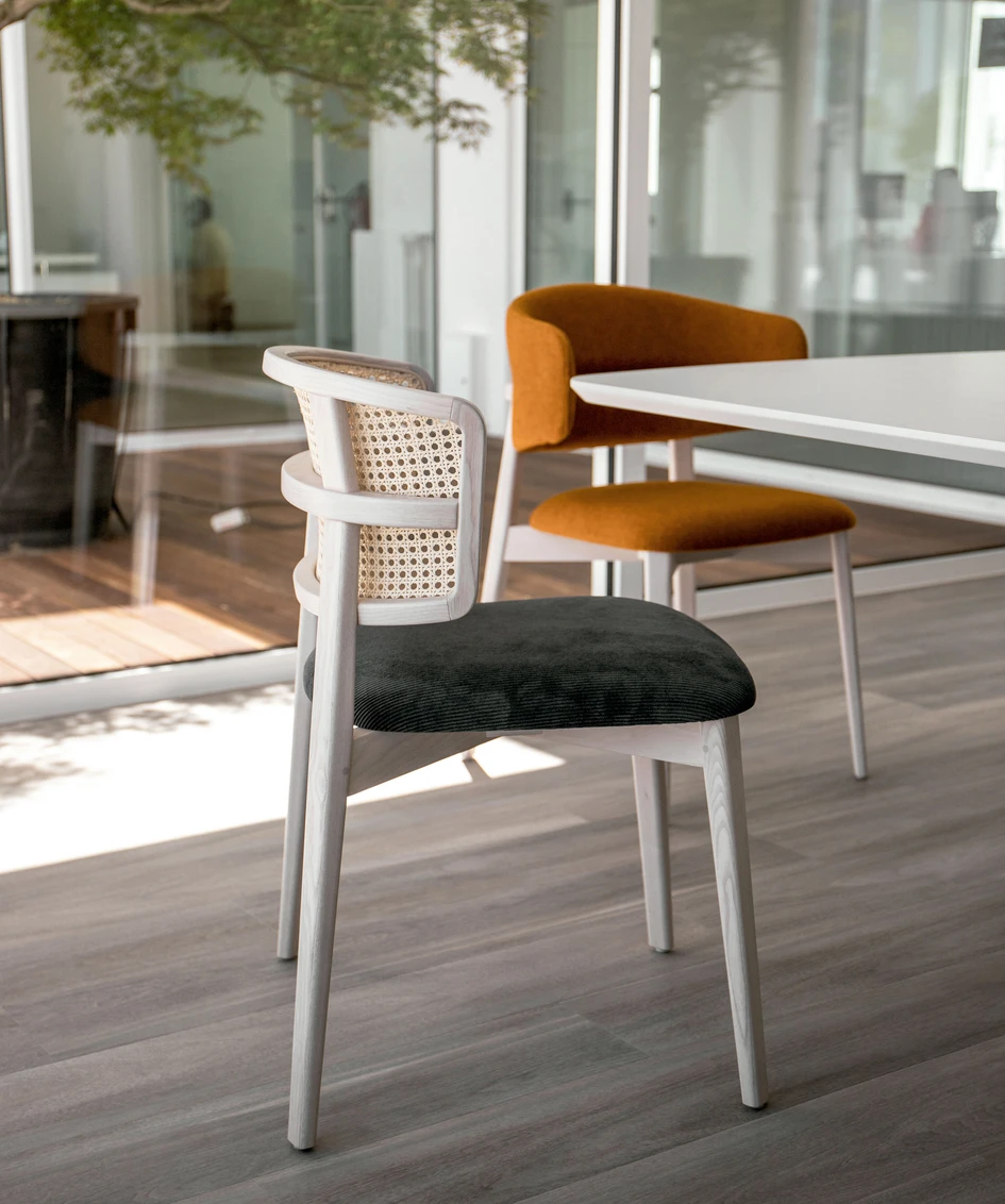 Amongst Fenabel’s regular collaborators is the Spanish designer Aitor Garcia de Vicuña. His latest collection for Fenabel is Éder, a series of chairs composed of bold, curved circles set seamlessly in an elegant frame of beech or ash. Imposing but playful and nodding respectfully to the classics of mid-century Scandinavian design, the Éder is available in coloured wood or part or fully upholstered. Crucially, it can do casual or formal.