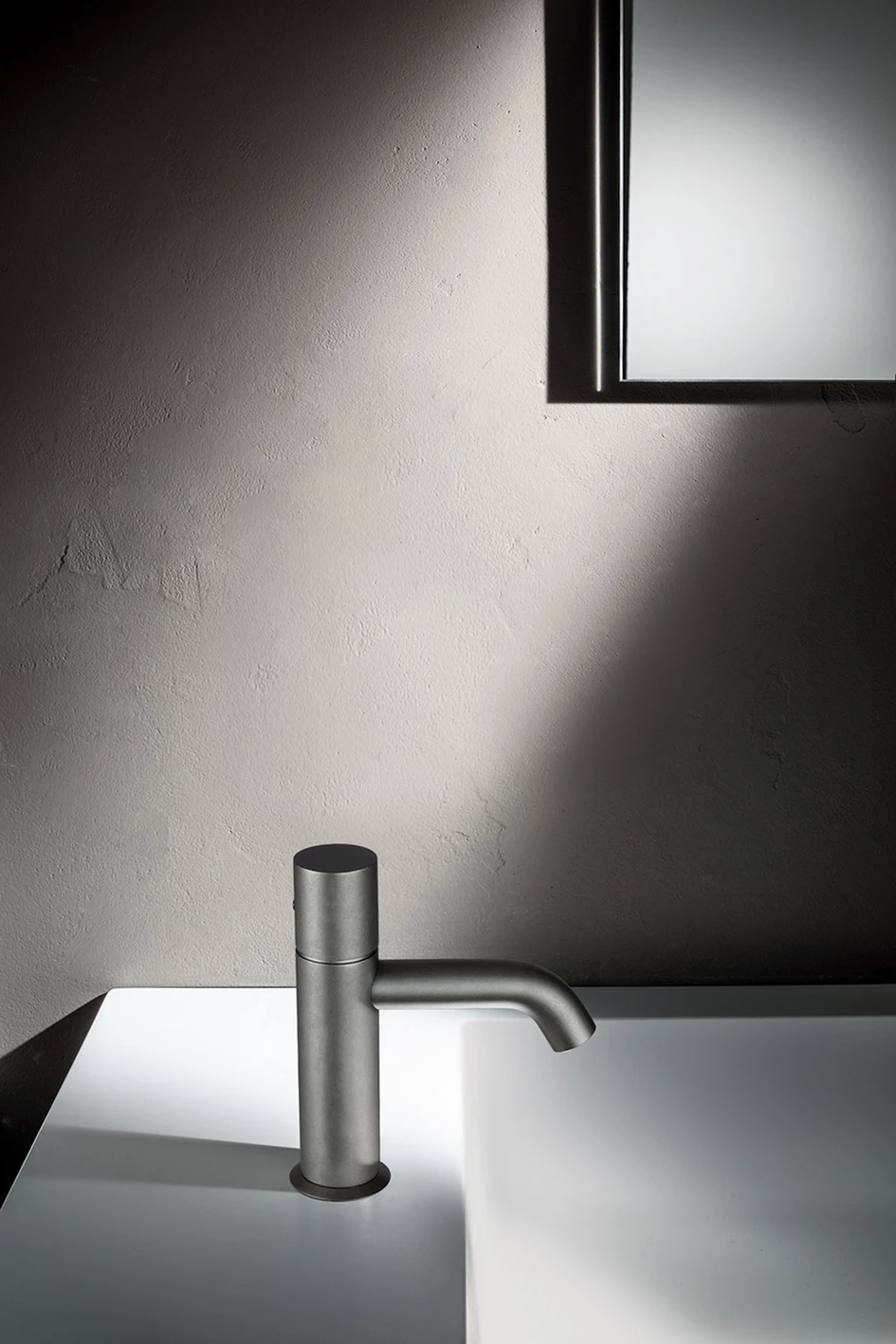 Il miscelatore Nostromo sorprende con il suo rigore formale ottenuto mediante un lungo percorso progettuale di sottrazione della materia, fino a toccare l’essenza della funzione: le finiture PVD esaltano questo percorso design.