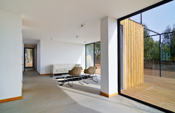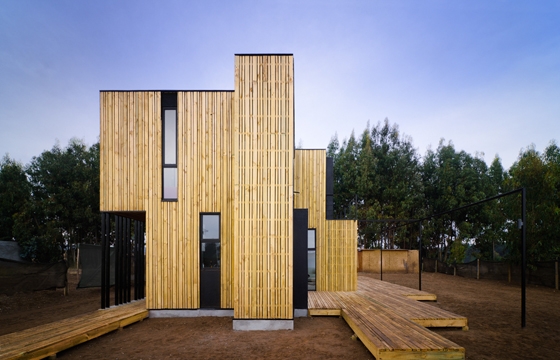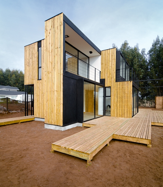 In an attempt to explore the simplest possible way of working with SIPS, architects Alejandro Soffia and Gabriel Rudolphy designed the SIP Panel House around a modular system of standardised wall and floor panels. The panels are configured in a staggered arrangement to create a two storey building made up of volumes of different dimensions that match their functions.