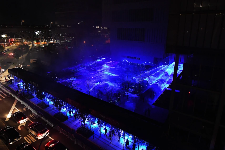 Augmented reality is already showing how single products will look in existing environments, so it’s a simple step to blend the technology with VR to combine real and future versions, allowing users to digitally and physically move through a visualised space.Studio Roosegaarde’s Waterlicht project shows how it’s even possible to project an environment to thousands of people at once, without the need for individual hardware. The water-like light show creates an imagined future environment in the city, using simple colours and textures of light.