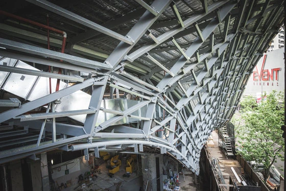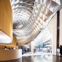 The beneficial effects of 3D visualisations continue, however, after the design phase. AR-MA worked as fabrication consultants on fjmtstudio’s 580 George Street project, building their own parametric model of the entrance facade. By writing all the architectural, engineering and material constraints and restrictions into the virtual design, the model allowed for real-time feedback on both costings and physical structural possibilities.Producing the fabrication files ahead of time allowed for sophisticated just-in-time manufacturing techniques to be applied to the build, using 1,291 custom-made aluminium composite panels with highly coordinated onsite assembly.