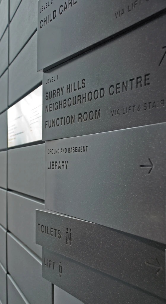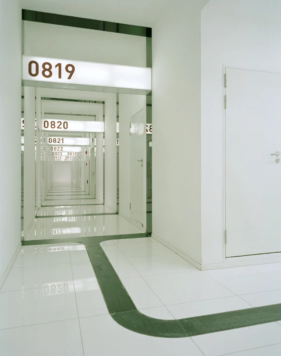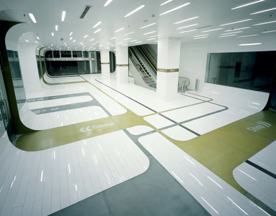 But if there’s one creative who is truly pushing the boundaries of wayfinding (as well as indicating where they lie, of course), it’s Zurich- and Paris-based Ruedi Baur of eponymous design studio Intégral Ruedi Baur, whose consistently original projects for, among other environments, airports, hospitals and offices, prove that a strong concept, if cleverly applied, isn’t at odds with utilitarian performance. An emphatic example of this is Baur’s highly expressive graphic scheme for the Médiathèque André Malraux Library in Strasbourg, which combines typography with striking bands of red (designed by the architects), to create a total spatial skin that shrouds every plane – including floors and ceilings – within the converted grain warehouse’s interior. Part wayfinding system, part amplification of Paris-based office Jean Marc Ibos Myrto Vitart’s architectural design (such is the integrated nature of the two), the strong graphic presence also serves as metaphor for the stock-in-trade of the library – text. Set in different typographic styles, directional signage is expressed purely through word and in continuous prose. The use of symbols is confidently eschewed.