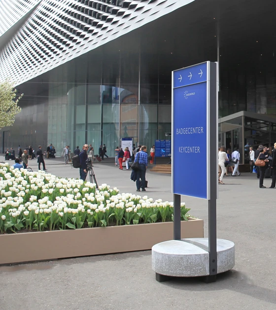 Such a sustainable way of doing things requires a certain investment, of course, but, thanks to the products' ruggedness and easy handling in an often demanding fair environment, it's an investment that more than pays for itself over time. ‘When it comes to signage and wayfinding,’ says Martin Burri, ‘sustainability in the long term is more important than the system in its initial iteration. The lifecycle cost of the system should be built into its initial purchase.’