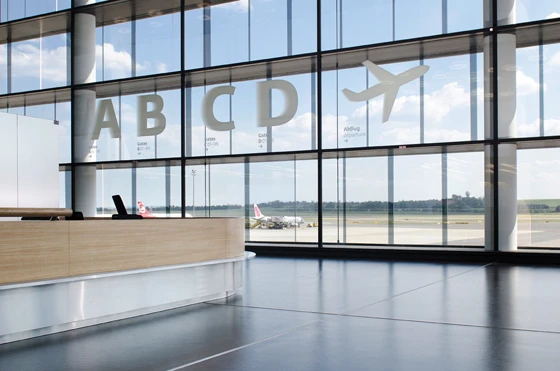 The concept of a pared-down, white-type-out-of-black signage programme – one which stands out optically thanks to its minimal chromatic expression – had already been applied to Zurich Airport in 2005 and proven its effectiveness. Also a project implemented by BURRI in terms of product development, production and installation, the Swiss manufacturer collaborated on this occasion with renowned British office Grimshaw Architects, who were responsible for the design of the wayfinding elements as products, as well as the architecture of the airport’s impressive new terminal. Designalltag Zürich were commissioned to create the graphics.