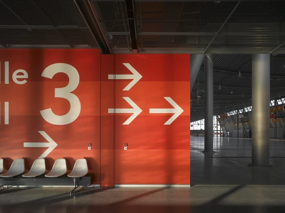 The successful winning of an international tender for the development, production and installation of over 1,800 separate signage elements across the five large halls, saw the Zurich-based firm, with its track record in the realisation and physical implementation of product and graphic design for public spaces, collaborate with Frankfurt design studio «unit-design» to transform their restrained yet highly functional, bespoke signage and orientation programme into a family of 12 new, technically clever products, fit for purpose.