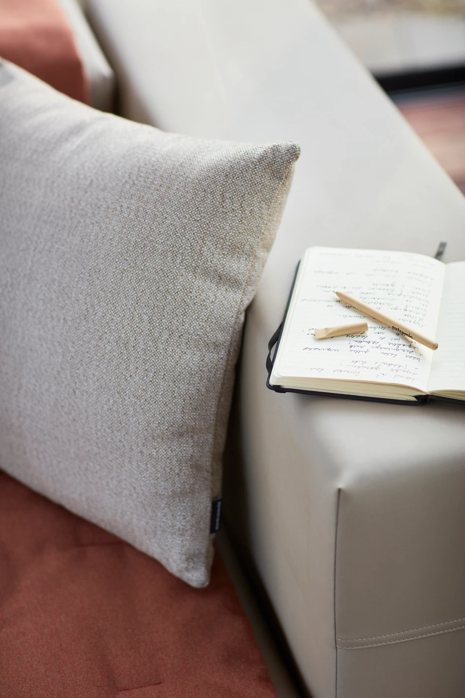 With Extremis’ Sundance-clad sofas available in subtle Chalk and a light sandy Safari, its five separate elements present a mind-boggling number of colour combinations. Attempting to mix and match them feels a lot like trying to solve a Rubik’s Cube – without tearing the little strips off. For an easier life, Extremis has produced a curated selection of combinations that complement Morbern’s Chalk and Safari PVC fabric beautifully.