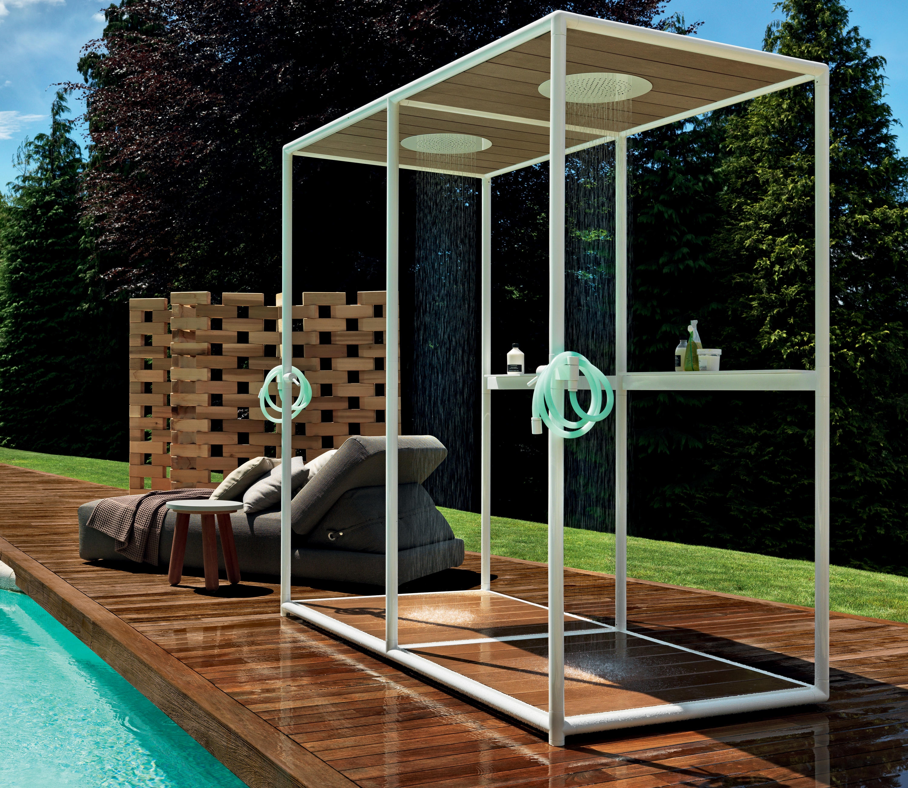 Let’s start with the simplest question. Due to their enclosed nature, showers are slaves to the floor plan, often just positioned in whichever corner is furthest from the door. But sometimes a more complicated architectural layout works in their favour. With three walls already formed, alcoves are naturally suited to shower placement. If the room is blessed with enough space, meanwhile, single walls can create luxurious walk-in and walk-out showers with dual entry/exit points. And the Wazebo outdoor shower pavilion from Kos proves no walls are really required at all.Shape: what shape should the shower be?