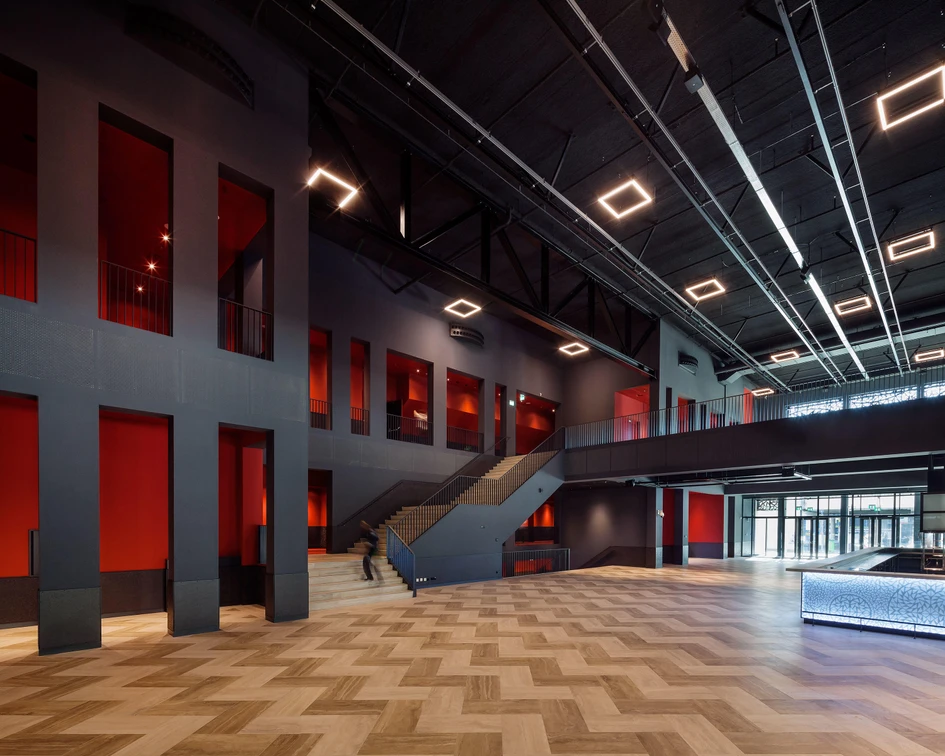 Theatre auditoriums use this split-level architecture to great effect, but the Zuidplein Theatre in Rotterdam, The Netherlands, borrows the feature for its lobby. With more space to catch their breath and avoid the intermission scrum, patrons of the arts are treated by the lobby’s vast and visible patterns on both window and floor axes.