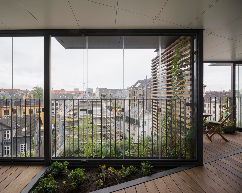 Avoiding the guilt of destroying the incumbent grass, architects Olson Kundig instead replaced it above the canopy. Far away from lakeside and woodland views, meanwhile, the Ørsted Gardens Apartments in Frederiksberg, Denmark, dissects its balcony’s greenery to give residents a little bit of the natural world, right outside their door.