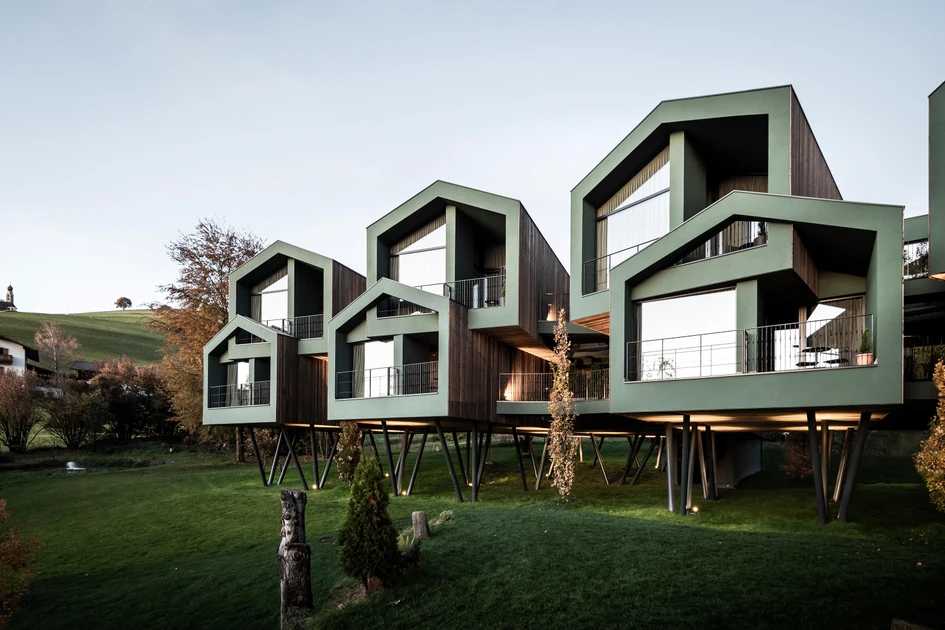 As well as giving death-defying views from balconies, supporting joists are strong enough to hold the weight of entire buildings. Projects like the Floris hotel suites in Siusi, Italy, or Wooden Treehouse C in Bali, Indonesia, crouch down carefully like visiting spaceships, without destroying the delicate ecosystems underneath.
