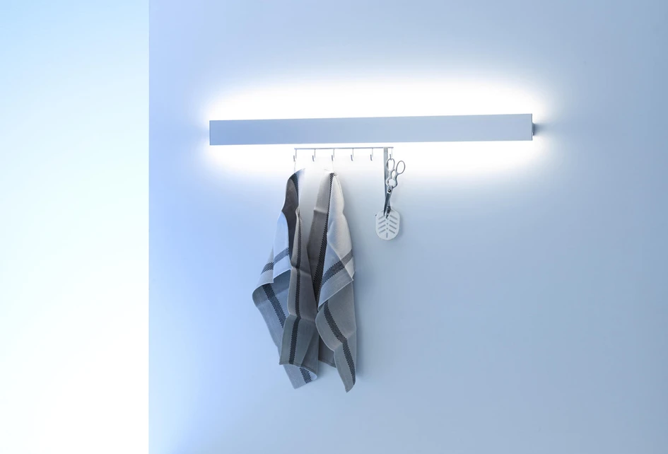 In the modern home, where space and materials are carefully considered at every turn, products with only one function are somewhat of a waste. Similar to how Cordula Kafka’s Daylight panel lights up its own artwork, Vibia’s Set Small Wall Lamp arrangement is an extremely simple set of decorative shelves which allow the user to arrange their own sculptural art piece, by positioning one uplight underneath other similar-looking fixtures, the collection of forms generate a canvas of light and shadow. Gera’s Coat Rack light, meanwhile, combines both its named functions with efficiency and grace, and Alape’s SP.FR1000.R1 illuminated mirror provides bright light for close-up facial work, while the dimmable light can also give bathrooms a soft, luxurious glow.Multi-purpose layered bathroom lighting