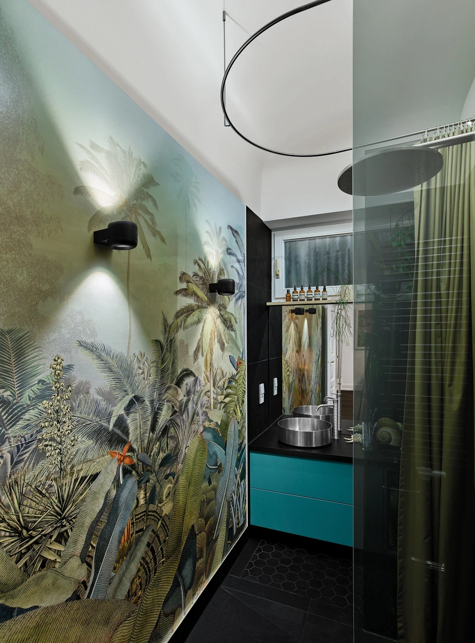 By lighting up the wall with simple up or down sconces like the CAVITY Wall lights from serien.lighting, designers have more freedom to select bolder patterns and brighter colours, knowing their detail won’t be lost in shadow. Alternatively, the sleek Tétra wall lights from CVL Luminaires can be used to create sculptural patterns that illuminate the wall’s surface even when turned off. The Lens Oval lights, meanwhile, from lzf, circle light around a reflective mirror at their centre, seemingly cutting a hole in the wall to create a delightful feature.