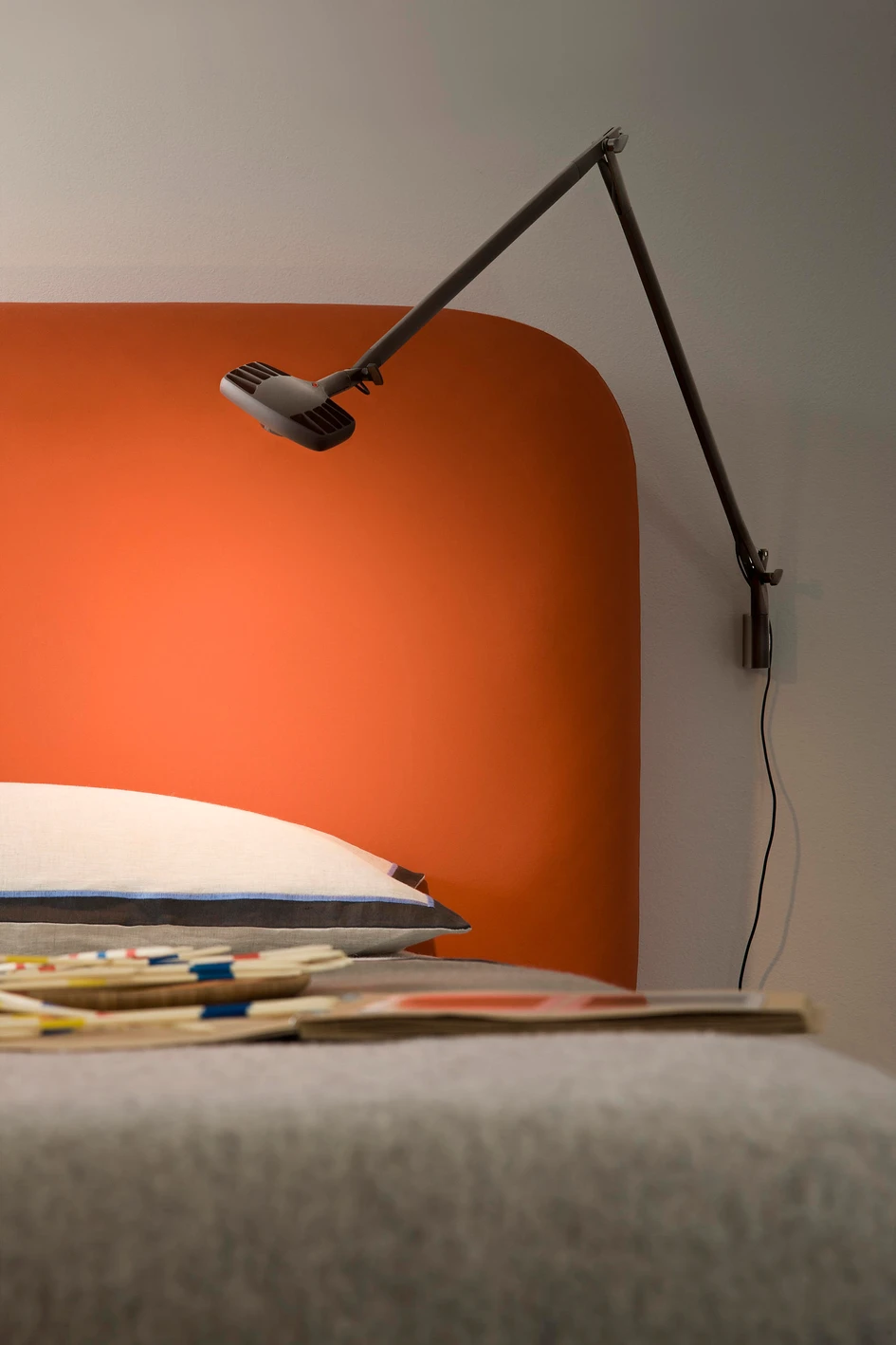 Whether it’s to find our glasses in the early morning, to find our way to the bathroom in the middle of the night or to find the route to bed the night before, bedside lamps give off enough light to see, without harshly startling us awake. In fixing a soft, gentle bedside light like the PETIT PAPILLON from MASSIFCENTRAL to the wall, however, the need for bedside table space is reduced, and minimalist bedroom areas can retain their clean, calming look.With adjustable colour temperature and a dimmer function, Luceplan’s Otto Watt arm positions either soft and glowing or more focused reading light anywhere the user needs. Alternatively, meanwhile, the Dots wall lights from Vibia also provide a choice of soft light from a surrounding halo, as well as reading light through a more directional beam.