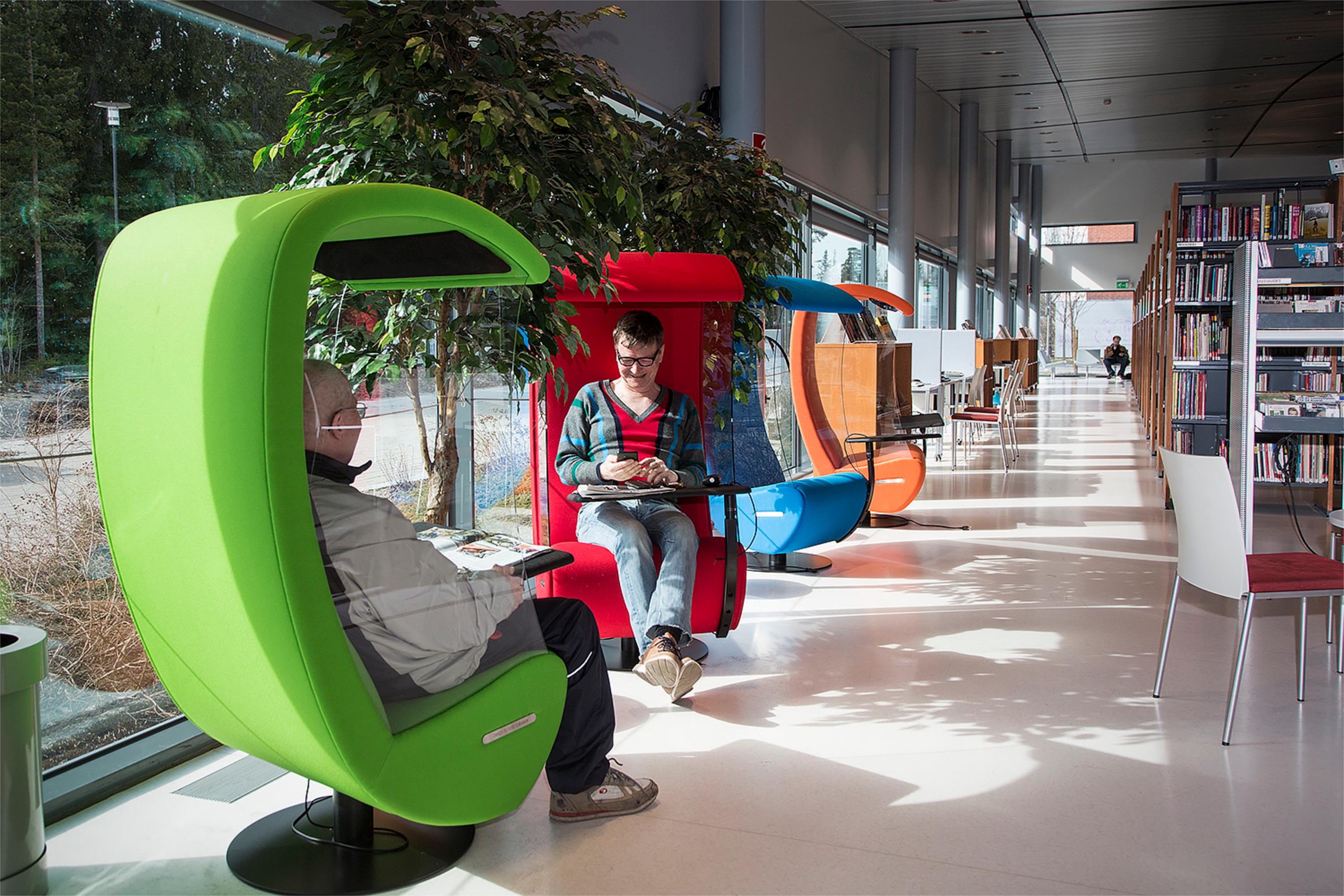 During a meeting in a loud open-plan office, inspiration hit Evävaara like a wall of sound. He realised the need for people to talk and work quietly and peacefully, within noisy and hectic environments