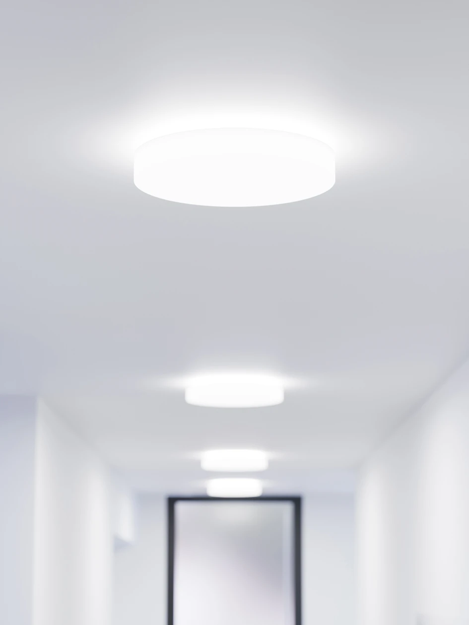 Milano Slim can be ceiling or wall-mounted, is also available as a pendant, and comes in a choice of three different diameter sizes: 430, 580 and 680 millimetres. And simple installation, as well as low maintenance, makes this luminaire a universally adaptable and uncomplicatedly integrated lighting solution for any room.