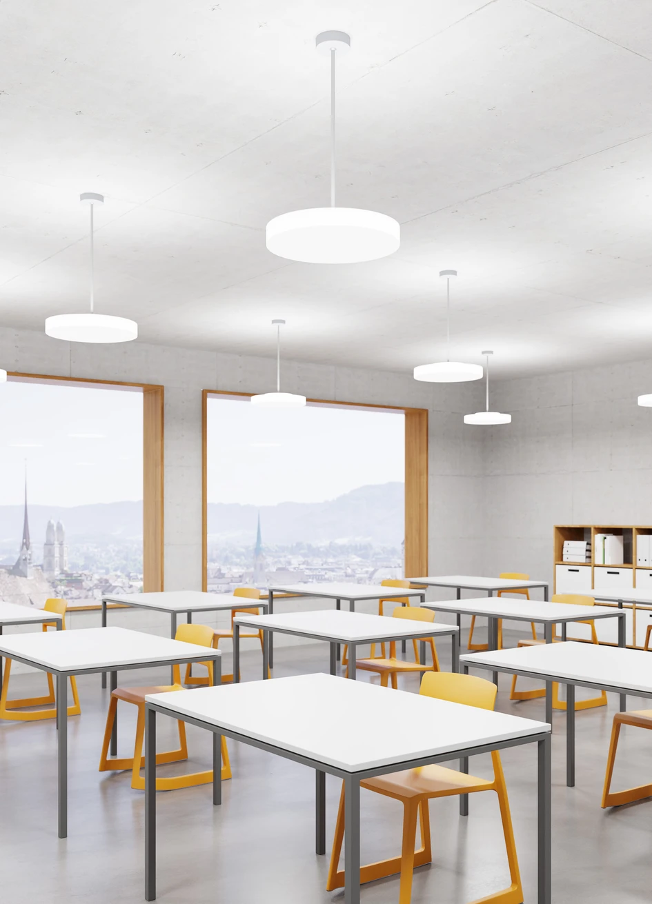 Good light not only meets specified standards, it also creates atmosphere, conveys comfort and enables ‘good visibility’. The correct light choice is therefore essential, especially for places where people spend long periods of time, have to concentrate on their work or want to learn, such as in the workplace or classroom.