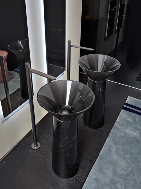 An extension of this idea is the brand’s more recent creation, Calice, a sink co-created by de Palo and Mario Ferrarini, which sees basin and wall form a similarly homogeneous surface.