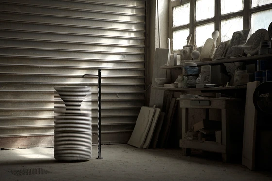 While the company fosters innovation, its new products sometimes represent an evolution of previous ideas, as demonstrated by some of the 20 or so pieces it launched at the Salone del Mobile this year. These included Ulian’s new, ultra-organic Intreccio washbasin carved, like Introverso, from a block of marble. However, Intreccio’s CNC-sculpted form is more intricate: seen from above, it resembles a basket or flower bud.