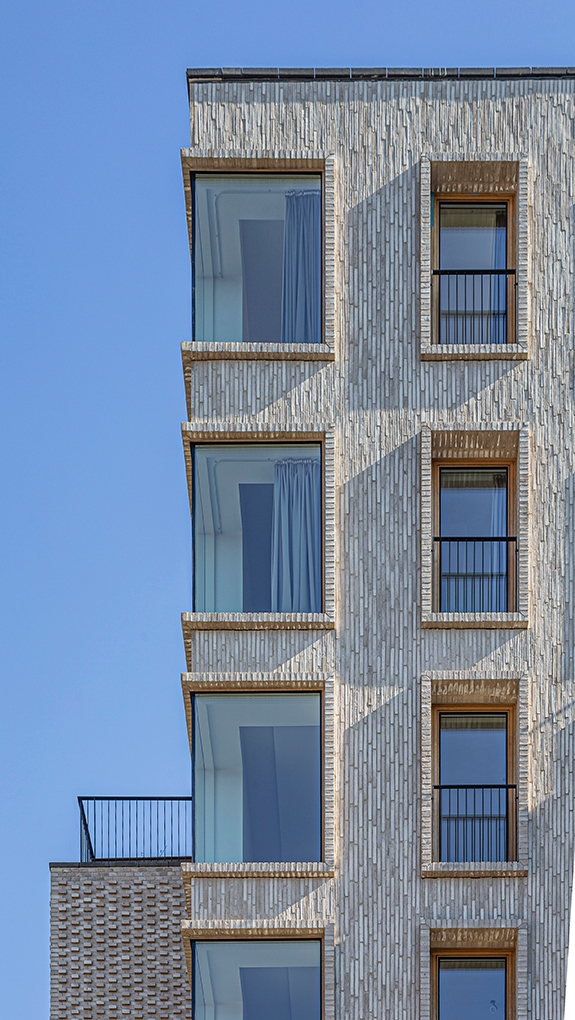 Both bricks are unique in structure and colour, and the combination of the two brings a subtle rhythmic feel into the masonry. Another interesting detail about the choice of bricks is the surface treatment, that was custom made for the project to give the towers a special finish.