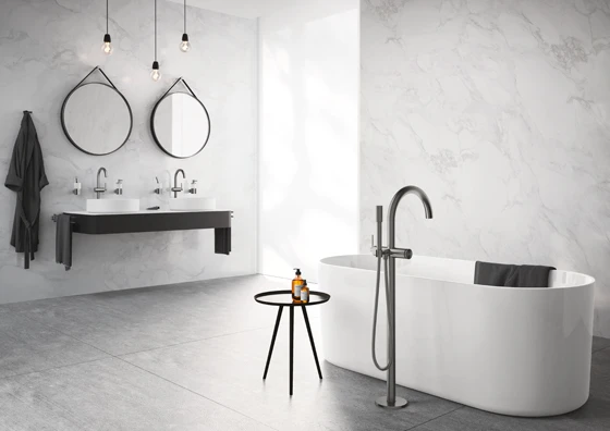 The clean lines and familiar shapes of Atrio’s updated design ensure it enhances both minimal bathroom schemes as well as more cosmopolitan or eclectic spaces. The comprehensive brassware collection includes a range of different sizes and mounting options to allow it to be used in combination with any sink or bath configuration. The option to specify the items in one of GROHE’s exclusive SPA Colours, such as SuperSteel or Brushed Hard Graphite, also provides an opportunity to customise the design to suit individual tastes.