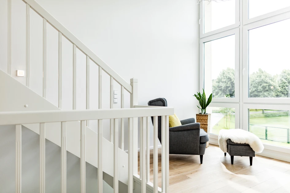 The stylish single-family house in Datteln is a perfect example of how easy a new home becomes intelligent. The young family moved in after a construction period of nine months. "We live in an architectural house that was built according to our wishes. Important to us was that it is very bright and has many windows. We wanted to combine old and new structures" explains the lady of the house. All rooms benefit from the bright and friendly atmosphere which is created by the natural light in combination with the white walls and furniture, as well as the bright tiles on the ground floor and the natural timber flooring on the upper floor.