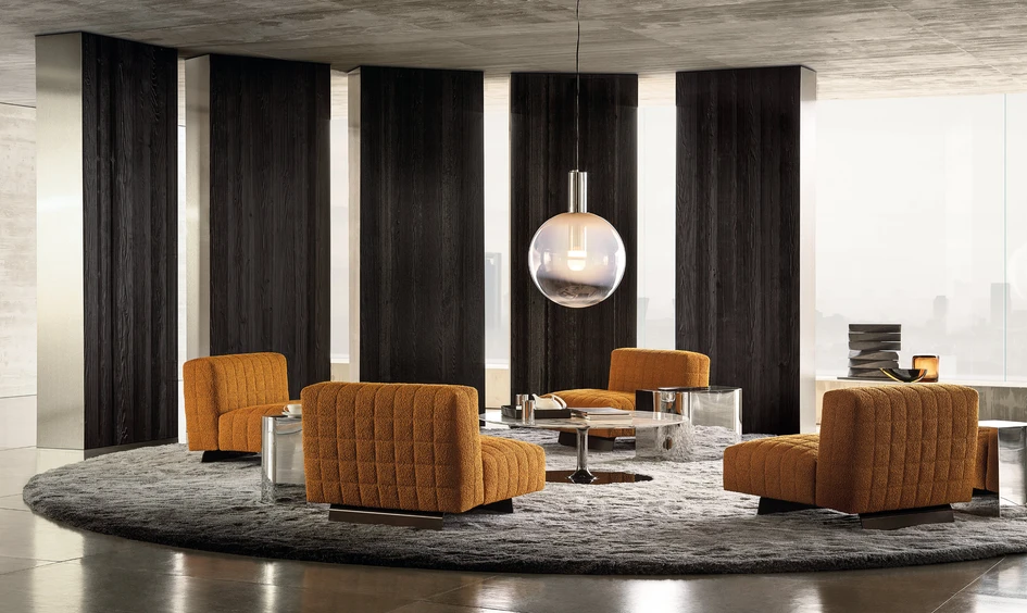 Designed by Rodolfo Dordoni, long-time Minotti art director, Twiggy takes its name from the homonymous ‘rebel icon’: the era-defining British model from the 1960s. Born as a precocious single, bold armchair (available in three versions – small, large and deep, and with or without armrests) – which demanded attention, sculpted space and oozed elegance, Twiggy now offers a dynamic modular system. Every detail, from its aluminium base to its chequered embellished stitching, evokes Minotti’s absolute technical know-how and its sophisticated sartorial approach.