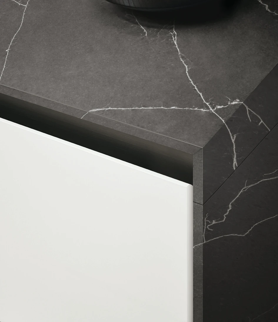 Another important aspect of Thea, is its integration with elements from past collections, integration that is in fact necessary for the concept to be completed. ‘One of these is Frame, a system of doors that links the Wet and Show areas, built into the accessorised wall with the vertical Gola Profile, as is the very thin Waterfall worktop with its detailed corners and Canto, the snack bar with its tapered edge on the three internal sides,’ explains Citterio. ‘Like all Arclinea products, Thea is part of a system, the Arclinea Collection, where each component, even from different models, can be used with the others.’ And there is nothing more commendable in sustainability terms than economy of design.
