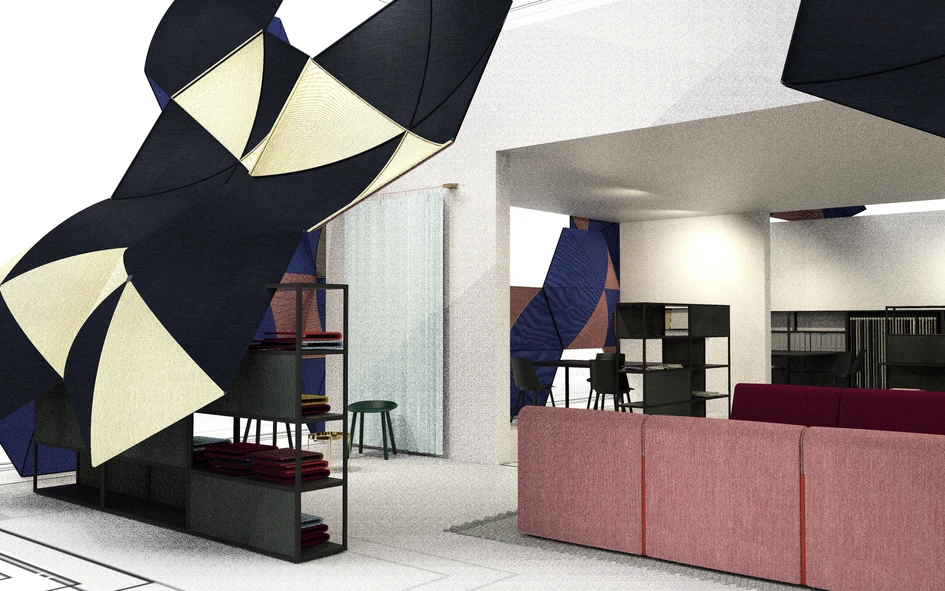 This year, the Design Post showroom in Cologne – located right across the street from the fairgrounds – will be transformed with an installation by Stefan Diez for the Danish textile specialist Kvadrat.