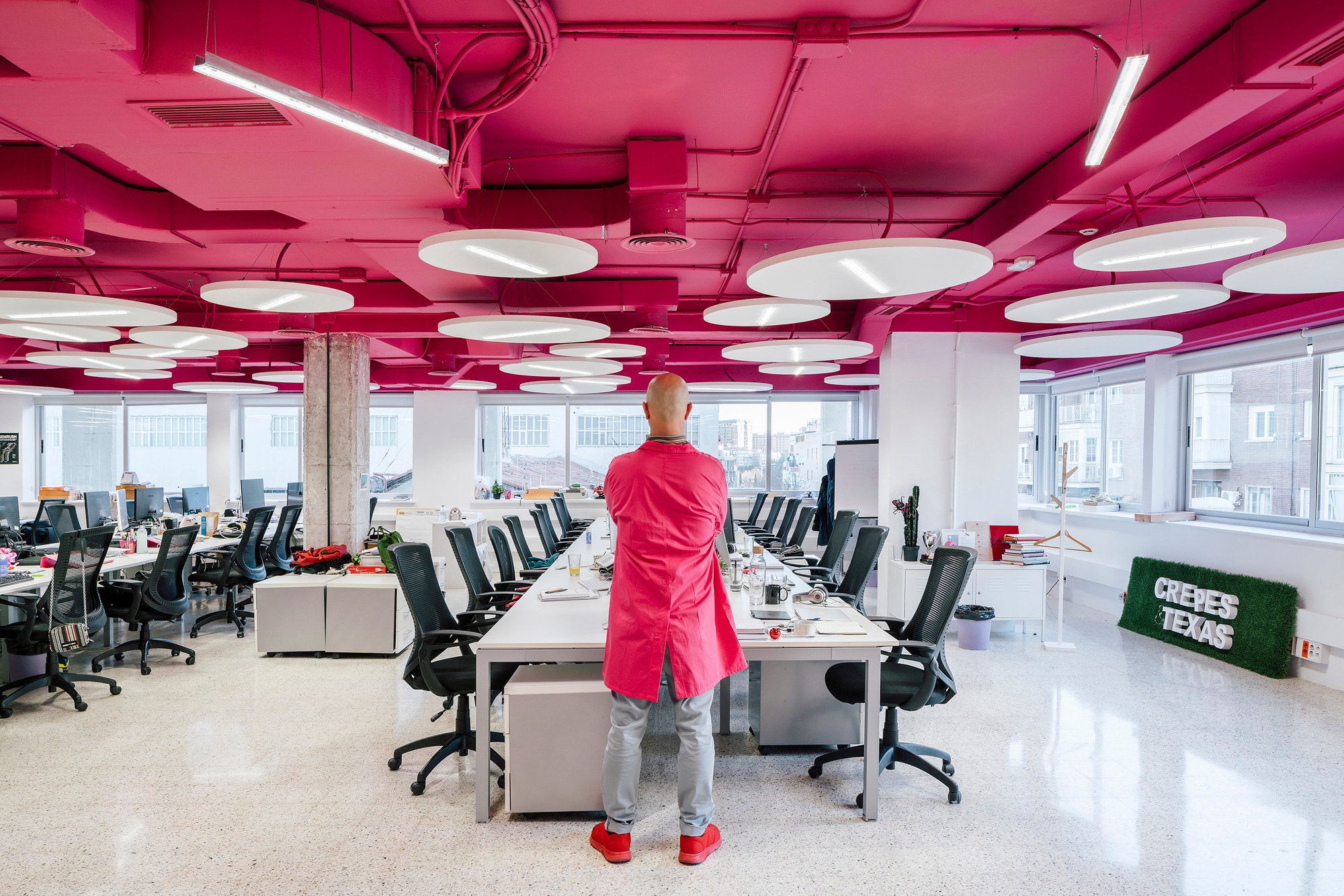 The strikingly chunky pieces seen in the Palladiana range make a heavy initial impact on a floor’s aesthetic, making the tiles a perfect solution for hospitality spaces. At the Annnd Cafe by Ruhaus Studio, for example, the large pieces of discarded green marble in the terrazzo floor were smashed by hand on-site. With the speckled effect created by smaller pieces, meanwhile – such as in the terrazzo flooring at the LH135 Offices Restoration by MARIANO – the subtle pattern can add depth to interiors. When combined with more impactful colours on the LH135 offices ceilings, the terrazzo floor stops the workplace from feeling blocky and two-dimensional.